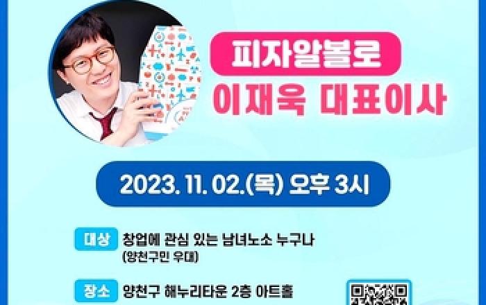 양천구는 지역 창업 활성화를 위해 다음 달 2일 해누리타운 아트홀에서 양천구에 본사를 둔 유명 외식 기업인 '피자 알볼로'의 이재욱 대표를 초청해 창업에 관심 있는 시민 100여 명을 대상으로 'CEO 창업특강'을 개최한다고 밝혔다. 특강을 진행할 이재욱 대표는 2