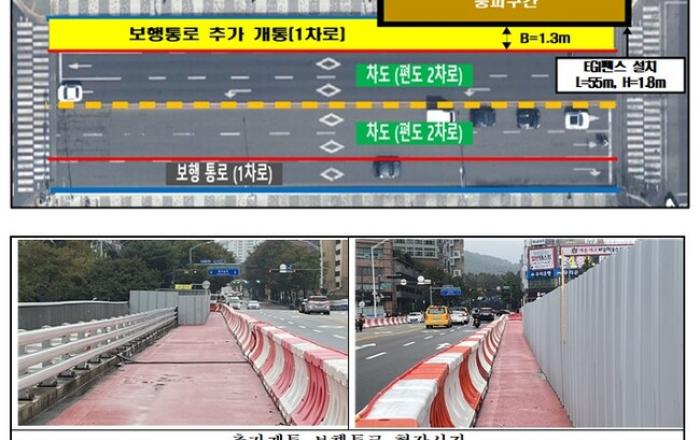 성남시는 차량 통제로 인한 시민들의 불편을 덜기 위해 지난달 정자교 차로와 한쪽 보행로를 부분적으로 개통한 데 이어 나머지 보행로도 20 일 추가 개통했다.