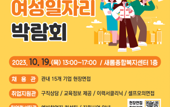 세종특별자치시가 19일 새롬종합복지센터에서 ‘세종시 여성일자리 박람회’를 열고, 취업난과 경력 단절의 어려움을 겪고 있는 여성의 취·창업을 지원한다. 시가 주최하고 세종여성새로일하기센터가 주관하는 세종시 여성일자리 박람회는 올해로 4회째를 맞아 ‘취업, 다시 날아오