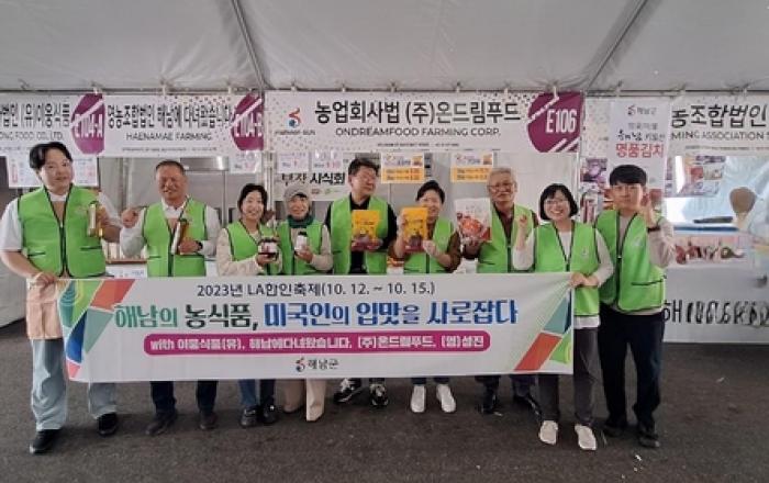 해남군이 지역 농수특산물의 미국 판로 개척에 속도를 내고 있다. 해남군은 미국에서 열리고 있는 LA한인축제 기간 중 현지시간 10월 12일부터 15일까지 농식품 판촉행사를 열고 있다. 올해로 50회째를 맺는 LA한인축제는 미주한인사회를 대표하는 최대축제로, 올해