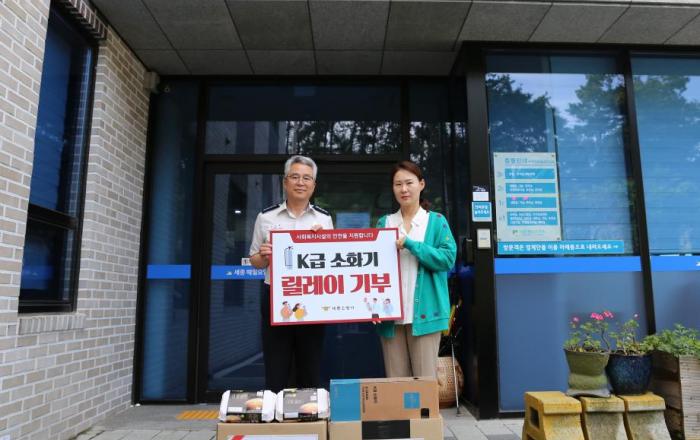 세종소방서가 취약계층을 위한 케이(K)급 소화기 릴레이 기부 행사로 지역사회에 따뜻한 바람을 불어넣고 있다. 소방서는 최근 축산품질평가원으로부터 기부받은 K급 소화기 22대를 관내 사회복지시설 등에 전달할 계획이라고 27일 밝혔다. 앞서 지난 21일