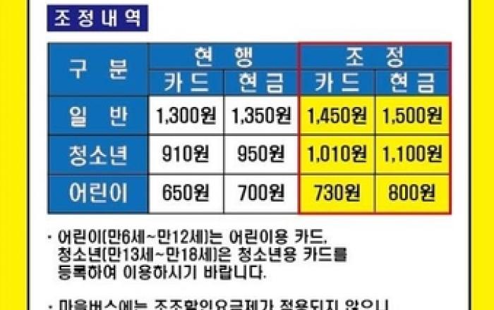 고양특례시의 마을버스 요금이 10월 7일부터 150원 인상된다. 인상된 요금은 7월 12일 소비자정책심의위원회 심의를 거쳐 책정됐다. 인상 요금은 경기도 시내버스 요금에 준하는 카드 기준 ▲일반인은 1,300원에서 1,450원으로 ▲청소년은 910원에서 1,010원