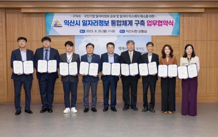익산시가 산 ·학· 관과 손잡고 산재해 있는 모든 일자리 정보를 한자리에 모아 공유 및 공동활용하는 통합체계를 구축한다. 시는 지역 구직자 및 구인기업들에게 폭넓은 일자리정보 제공을 위해 25일 시청 상황실에서 9개 기업·지역대학·직업훈련 전문기관과 일자리정보 통합