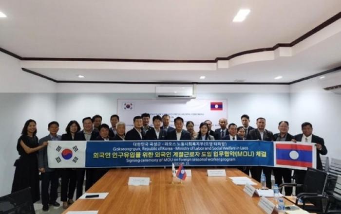 곡성군이 지난 21일 라오스를 방문해 노동사회복지부 고용부 회의실에서 므앙타파밭군과 외국인 계절 근로자 유치를 위한 업무협약(MOU)을 체결했다고 밝혔다. 이번 협약식은 농촌인구 감소 및 고령화로 인한 농번기 일손 부족을 해결하기 위한 목적으로 체결됐다. 협약식
