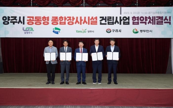 양주시는 지난 22일 경기섬유종합지원센터에서 종합장사시설 건립과 관련해 양주 인근 4개 시가 모여 양해각서(MOU)를 체결했다. 이번 협약체결식에는 양주시 박성남 부시장, 백경현 구리시장, 남양주시 이석범 부시장, 의정부시 김재훈 부시장, 동두천시 박상덕 부시장과