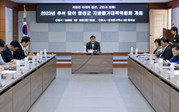 합천군은 추석 명절을 맞이해 22일 삼가면사무소 2층에서 유관기관, 단체 관계자 등 30여 명이 참석한 가운데 '2023년 추석 명절맞이 합천군 지방물가대책위원회'를 개최했다. 이날 지방물가대책위원회는 추석 명절을 앞두고 국제정세 등의 영향으로 성수품의 가격 급등이