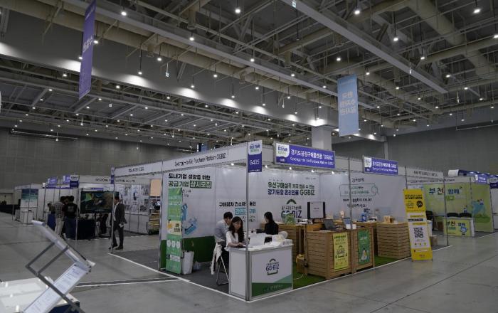 경기도와 경기도주식회사가 운영하는 경기도 공정구매플랫폼 ‘GG-BIZ’(지지비즈)가 20일부터 열린 ‘경기환경산업전(2023 에코페어 코리아)’에 참가해 실수요자들과 관련 기업을 대상으로 홍보를 펼쳤다. 경기도주식회사는 박람