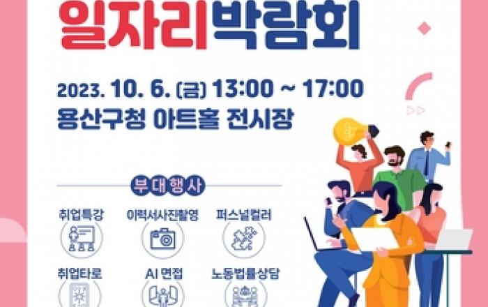 서울 용산구는 다음 달 6일 용산아트홀 전시장에서 '2023년 용산구 일자리박람회'를 개최한다. 이번 행사는 구직자에게는 우수 추천기업에 취업할 기회와 다양한 구직정보를 제공하고, 구인기업에는 맞춤형 인재 채용의 기회를 제공한다. 당일 현장에는 기업채용관, 정책