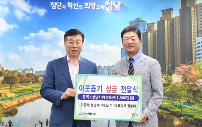 성남시에 추석을 앞두고 어려운 이웃들과 명절을 함께 하려는 버스회사들의 성금 기탁이 줄을 잇고 있다. 분당구 야탑동 소재 성남시내버스㈜는