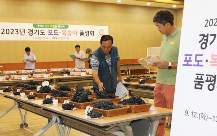 경기도농업기술원은 12일과 13일 이틀간 농기원 농업과학교육관에서 경기도 최고 품질의 포도, 복숭아 선발을 위한 품평회를 개최했다. 도 농기원은 수입과일 증가로 구매량이 감소하고 있는 우리 과일의 소비를 촉진하기 위해 매년 과수 품평회를 추진하