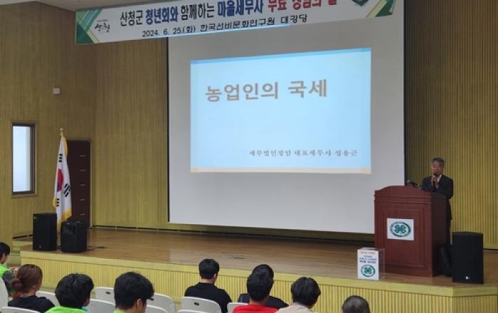 산청군은 지난 25일 시천면 한국선비문화연구원 대강당에서 4-H연합회와 함께하는 '마을세무사 무료 상담의 날'을 운영했다고 26일 밝혔다. 이번 무료 상담은 미래 납세 주역인 산청군 청년 농업인을 대상으로 복잡한 세금 고민 해결과 절세혜택 방안을 제시하기 위해 마련