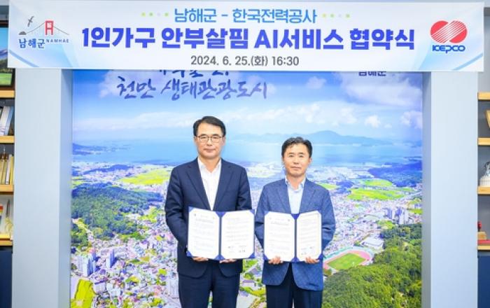 남해군은 지난 25일 전력·통신 빅데이터를 활용해 위기를 감지하는 '1인가구 안부살핌 서비스'를 추진하기 위해 한국전력 남해지사(지사장 황성필)와 업무협약을 체결했다. 1인 가구 안부살핌 서비스는 전기 사용량, 통화 수·발신, 문자 발신, 데이터 사용량 등을 분석해