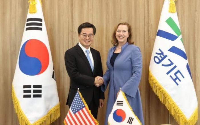 김동연 경기도지사가 산업안전인증 분야의 세계적 선두기업 UL솔루션즈의 제니퍼 스캔론(Jennifer Scanlon) 회장 겸 최고경영자(CEO)를 만나 첨단 자동차·배터리 안전 시험센터 설립 투자유치를 논의했다. 두 사람은 최근 화성시에서 발생한 공장화
