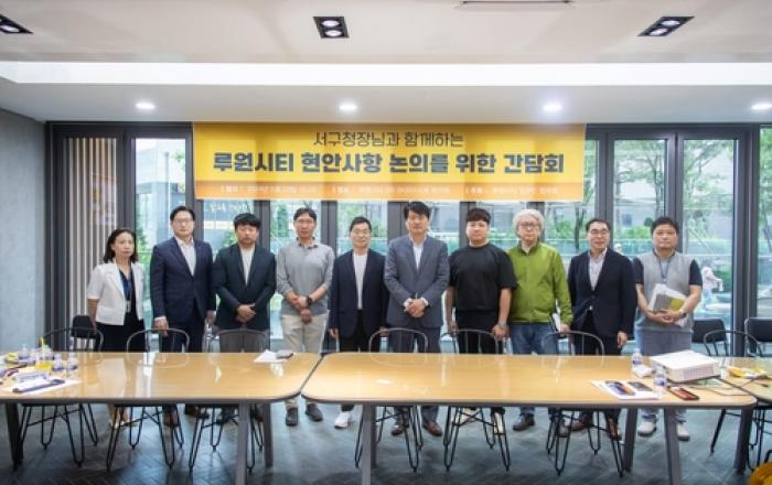 인천 서구는 지난 29일 루원시티 SK리더스뷰2차 아파트를 방문해 루원시티 입주민 협의회와 주민 간담회를 가졌다고 밝혔다. 이번 간담회는 루원시티 6개 아파트 입주자대표회의 회장으로 구성된 루원시티 입주민 협의회 관계자 등 지역주민들을 만나 루원시티 도시개발사업 관