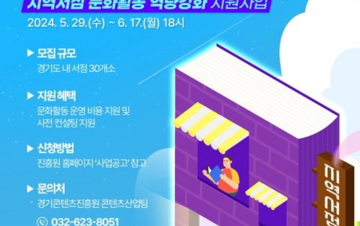 경기도와 경기콘텐츠진흥원은 ‘지역서점 문화활동 역량강화 지원’ 사업에 참여할 지역서점을 6월 17일까지 공개 모집한다. ‘지역서점 문화활동 역량강화 지원’ 사업은 도내 지역서점이 독서 모임, 북토크, 글쓰기, 원데이 클래스
