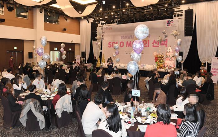 성남시가 주선한 미혼 남녀의 만남 자리 ‘ 솔로몬의 선택 ’ 행사에서 1 호 결혼 커플이 탄생하게 됐다