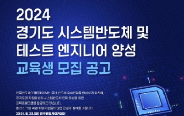 경기도와 한국반도체아카데미 경기도교육센터에서 팹리스 기업 취업희망자를 위한 ‘2024 경기도 시스템반도체 및 테스트 엔지니어 양성 교육프로그램’ 교육생을 29일부터 다음 달 4일까지 일주일간 모집한다. 한국반도체아카데미 경기