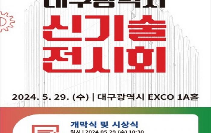 대구광역시는 신기술 활용 촉진 및 지역혁신기업의 경쟁력 강화를 위해 ‘2024 신기술 전시회’를 5월 29일(수) 엑스코에서 개최한다. 대구광역시가 주최하고 한국건설교통신기술협회·신기술진흥연구원·국토교통과학기술진흥원이 공동 주관하는 ‘2024 신기술 전시회’는 ’22년