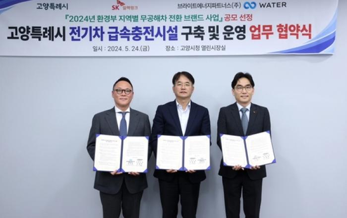 고양특례시는 지난 24일 SK일렉링크(주), 브라이트에너지파트너스(주)와'고양특례시 전기자동차 충전시설 구축 및 운영' 협약을 체결했다고 밝혔다. 이 협약은 전기차 보급 확대와 탄소중립 실현이라는 고양특례시의 비전과 전기차 충전 인프라 산업을 선도하는 충전 사업자의