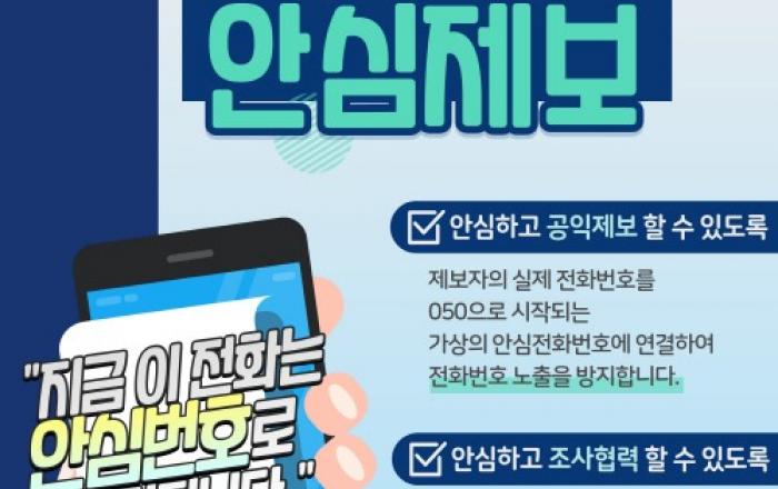 경기도가 전국 최초로 올 6월부터 공익제보 안심전화번호 서비스인 ‘누구나안심제보’ 서비스를 시작한다. 공익제보 과정에서 제보자가 안심하고 조사에 협력할 수 있도록 제보자의 전화번호 노출을 방지하는 가상의 안심전화번호를 부여하