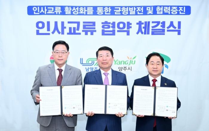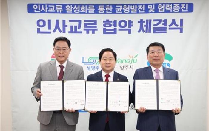 남양주시는 23일 구리시청에서 구리시, 양주시, 의정부시와 함께 직원 인사교류 협약을 체결했다. 이날 협약식은 주광덕 남양주시장을 비롯해 백경현 구리시장, 강수현 양주시장과 관계 공무원 등이 참석한 가운데 진행됐다. 이번 협약은 지역 간 행정발전과 원활한 협조체