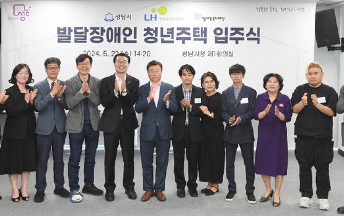 성남시는 도내 처음으로 마련한 발달장애인 청년주택 ( 수정구 태평동 ) 에 6 명의 입주가 확정돼 축하하는