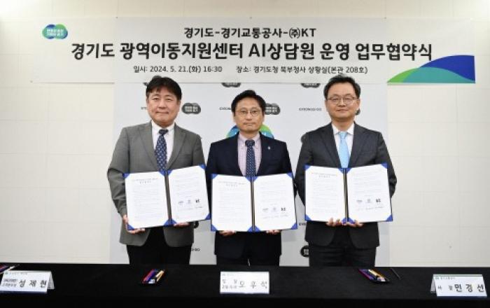 경기도와 경기교통공사, ㈜KT는 21일 업무협약을 체결하고 장애인콜택시(정식명칭:특별교통수단) AI상담원을 올해 7월 도입‧운영하기로 했다. 경기교통공사 광역이동지원센터는 장애인콜택시의 시도 및 시군 간 이동에 대한 이용접수 및 배차 업무를 수