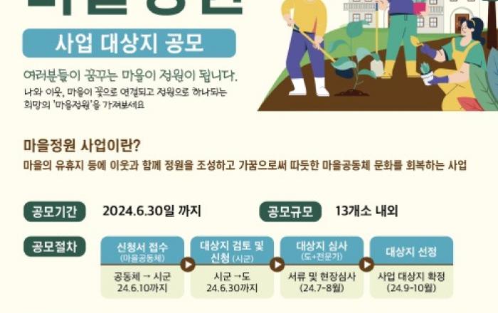 경기도가 마을 내 유휴지 등을 활용해 정원을 조성하고 지속적인 정원 가꾸기 활동을 위해 ‘2025년 경기도 시민주도형 마을정원 조성사업’ 참여 대상지를 모집한다고 22일 밝혔다. 이번 공모는 마을 내 유휴지·공한지·자투리땅 등 정원으로 조성하고