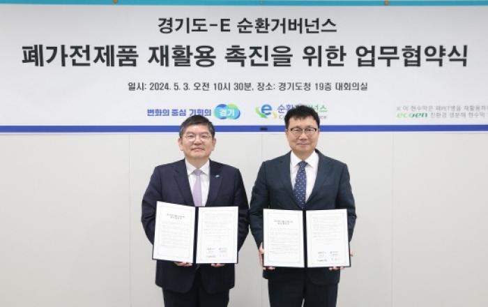 경기도는 5월 3일 오전 19층 대회의실에서 이순환거버넌스(구 한국전자제품자원순환공제조합)와 함께 폐가전제품의 수거 및 재활용을 촉진하기 위한 업무 협약을 체결했다. 협약에 따라 경기도는 폐가전제품 배출 및 재활용 촉진을 위한 행정적 지원을 제