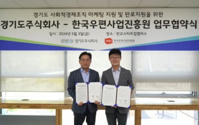 경기도주식회사는 성남시 판교스타트업캠퍼스에서 한국우편사업진흥원과 ‘경기도 사회적경제조직 판로 지원을 위한 업무협약(MOU)’을 체결하고 판로 개척에 힘을 더하기로 했다고 3일 밝혔다. 올해 사회적경제 활성화를 위해 경기도주식회사는 사회적경제 온