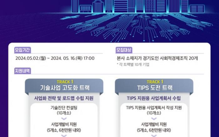 경기도사회적경제원은 ‘2024년 R&D(연구개발)기반 규모화 지원사업’ 참여기업 20곳을 오는 16일까지 모집한다. 이번 사업은 사회 문제해결을 위한 혁신적 기술 기반의 제품 및 서비스를 보유한 사회적경제조직의 안정적