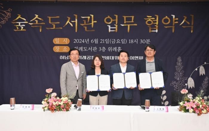 하남시가 지난 21일 위례도서관 위례홀에서 위례공통현안비상대책위원회(이하 비대위), DL이앤씨와 위례 숲속도서관 건립을 위한 3자 간 업무협약을 체결했다고 24일 밝혔다. 이날 업무협약식에는 진일순 평생교육원장, 김영환 비대위원장, 김덕호 DL이앤씨 소장(현장대리