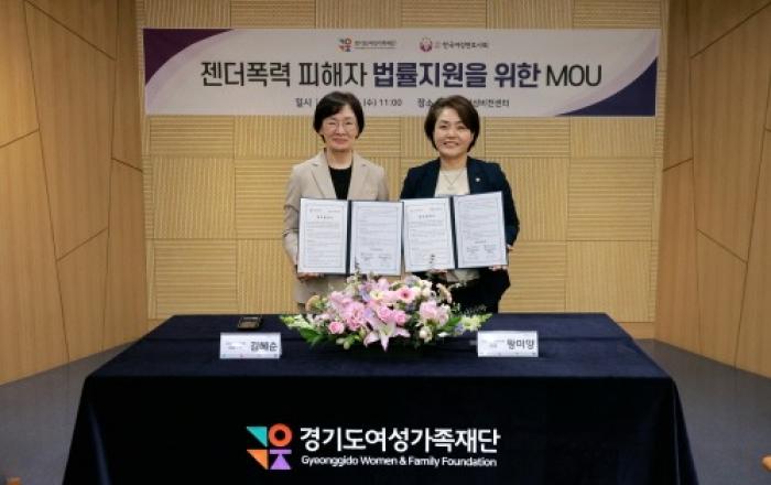 경기도여성가족재단 젠더폭력통합대응센터는 24일 한국여성변호사회와 업무협약(MOU)을 체결하고, 젠더폭력 피해와 관련해 신속하고 전문적인 대응· 협력을 함께하기로 했다. 양 기관은 피해자 법률 지원을 확대하기 위해 젠더폭력통합