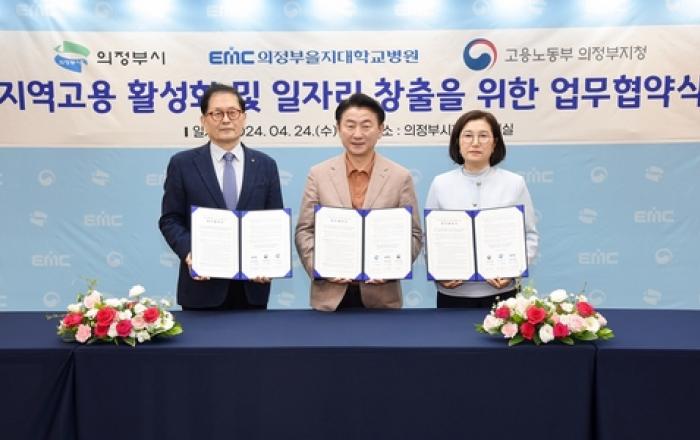 의정부시는 4월 24일 시청 중회의실에서 의정부을지대학교병원, 고용노동부 의정부지청과 '지역고용 활성화 및 일자리 창출을 위한 업무협약'을 체결했다. 이번 협약은 의정부을지대학교병원이 경기도 동북권역 소아응급책임의료기관으로 선정됨에 따라 마련했다. 의정부을지대병원