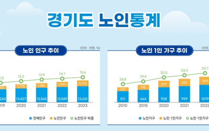 경기도 노인 비율이 지난해 15%를 넘은 가운데 노인 셋 중 하나는 노후 준비를 하지 못하고, 월 소득이 100만 원 미만인 것으로 나타났다. 경기도는 2023년 기준으로 행정안전부의 주민등록인구 현황, 경기도의 사회조사 등 65세 이상 노인