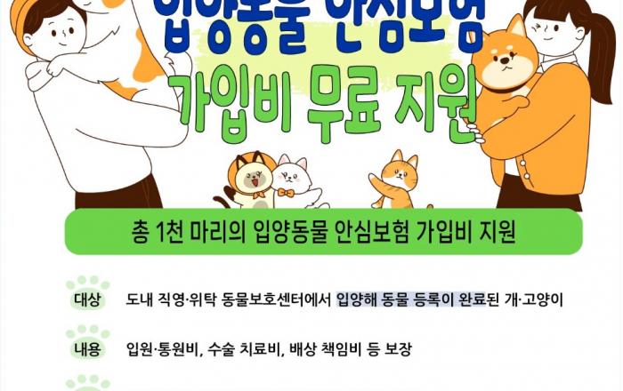 경기도가 유기동물 입양자를 대상으로 반려동물보험(펫보험) 가입을 지원한다. 23일 경기도에 따르면 도는 이런 내용을 담은 입양동물 안심보험 지원사업을 하기로 하고 지난 22일부터 가입자 모집을 시작했다. 입양동물 안