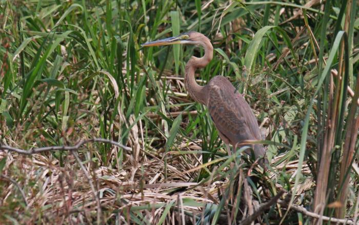 의왕시 레솔레파크 왕송호수에서 최근 붉은왜가리(Purple Heron, 학명 : Ardea purpurea) 어린새 1개체가 관찰돼 눈길을 끌고 있다.붉은왜가리(Purple Heron, 학명 : Ardea purpurea)는 국내에서 극히 드물게 관찰되는 새로, 봄과