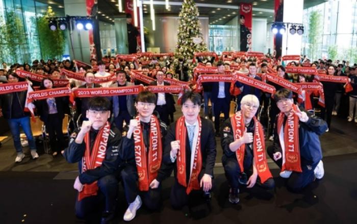 네 번째 '롤드컵' 우승이라는 쾌거를 이루며 e스포츠 최고 명문 구단의 위상을 높인 T1 선수들이 SK 구성원들의 뜨거운 축하 속 내년 시즌을 향한 각오를 다졌다. SK텔레콤과 SK스퀘어는 T1 선수단의 2023 리그 오브 레전드(League of Legends,
