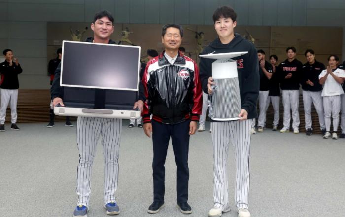 서울 LG트윈스는 10월 19일 이천LG챔피언스파크에서 선수단 및 현장스탭, 프런트 임직원 등 200여명에게 한국시리즈에서의 선전을 기원하며 통합우승을 달성하자는 의미로 격려품을 전달했다. 구단은 10월 19일부터 한국시리즈를 준비하기 위해 이천LG챔피언