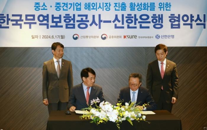정부가 신한은행, 무역보험공사와 함께 해외진출하는 중소·중견기업에 1조 원 규모의 수출금융을 우대 지원한다. 금융위원회는 17일 신한은행과 한국무역보험공사가 이같은 내용의 ‘중소·중견기업 해외진출 활성화 지원 업무협약’을 체결했다고 밝혔다. 협약식에는 안덕근 산업통상자