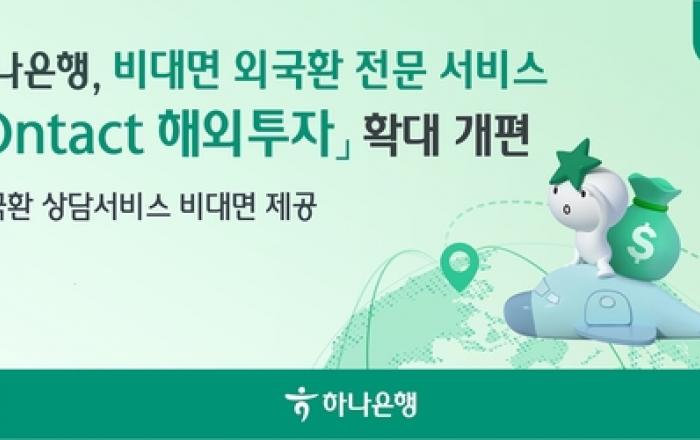 하나은행은 비대면으로 외국환 신고(수리) 업무가 가능한 “Ontact 해외투자” 서비스를 확대 개편했다고 밝혔다. 하나은행 기업 인터넷뱅킹을 통해 이용할 수 있는 "Ontact 해외투자"는 비대면 금융서비스 강화 및 외국환 상담 채널의 다변화를 위해 ▲해외직접투자