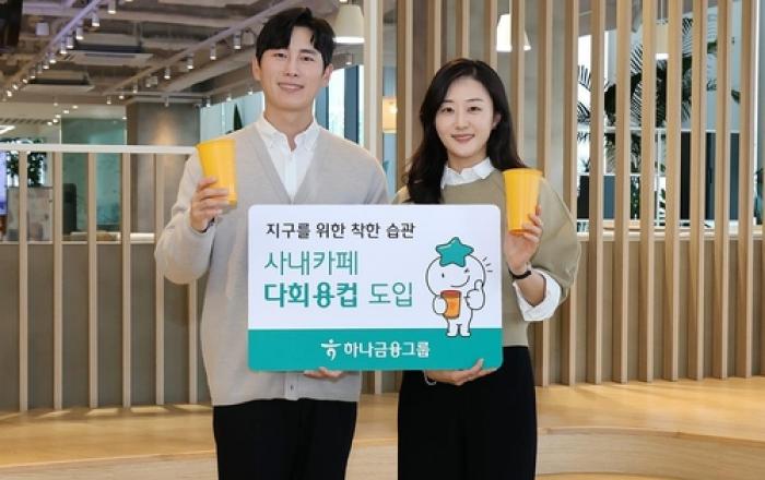 하나금융그룹은 친환경 경영 실천을 위해 그룹 명동 사옥에서 운영 중인 사내카페에 다회용 컵 도입을 시행한다고 밝혔다. 하나금융그룹은 SK텔레콤과 협업을 통해 SK텔레콤의 정보통신기술(ICT) 솔루션이 적용된 다회용 컵 순환 캠페인 '해피해빗'에 동참하고, 그룹의 임