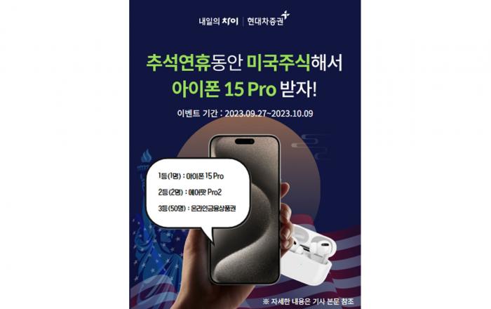 현대차증권은 9월 27일부터 10월 9일까지 조건을 충족한 미국주식 거래 고객을 대상으로 추첨을 통해 경품을 지급하는 이벤트를 진행한다고 27일 밝혔다. 이벤트 대상은 이벤트 기간 내 미국주식을 $1,000 이상 거래한 개인 고객이며 $1
