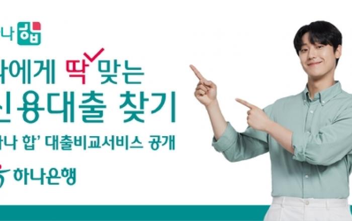 하나은행은 마이데이터 기반 초개인화 디지털 자산관리 플랫폼 '하나 합'을 통해 하나금융그룹 핀테크 플랫폼 관계사인 '핀크'의 '대출비교 서비스'를 선보인다고 밝혔다. 하나은행 상품을 포함해 총 38개 금융기관 100개의 다양한 대출상품이 제휴돼 있는 '대출비교 서