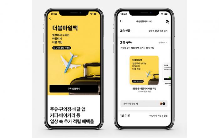 현대카드가 소비 트렌드와 고객의 취향에 맞춰 차별화된 혜택을 제공하는 ‘3층 시스템’내에 대한항공 마일리지 정기 구독 서비스인 ‘더블마일팩’을 추가한다고 18일 밝혔다. 3층 시스템은 보유한 현대카드의 기본 혜택이 탑재된 ‘1층 기본’, 트렌디한 정기 구