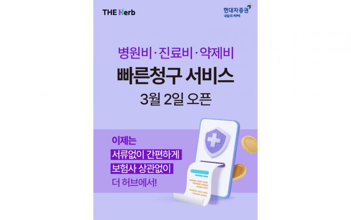 현대차증권은 이달 2일부터 마이데이터(본인신용정보관리업) 앱 ‘더허브(THE Herb)’에 ‘병원비 빠른 청구 서비스’ 기능을 추가했다고 8일 밝혔다. 이번 서비스를 통해 개별 보험사 채널 방문없이 비대면 보험 청구가 가능해졌