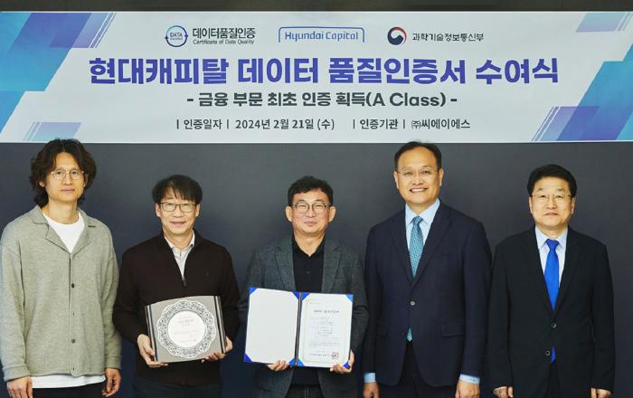 현대캐피탈은 금융업계 최초로 과학기술정보통신부에서 지정한 데이터 품질인증기관인 ‘씨에이에스(Computer Assurance Service, C.A.S)’로부터 데이터 품질인증 A등급을 획득했다고 29일 밝혔다. 데이터 품질인증은 데이터산업법 제20조에 근거해 데
