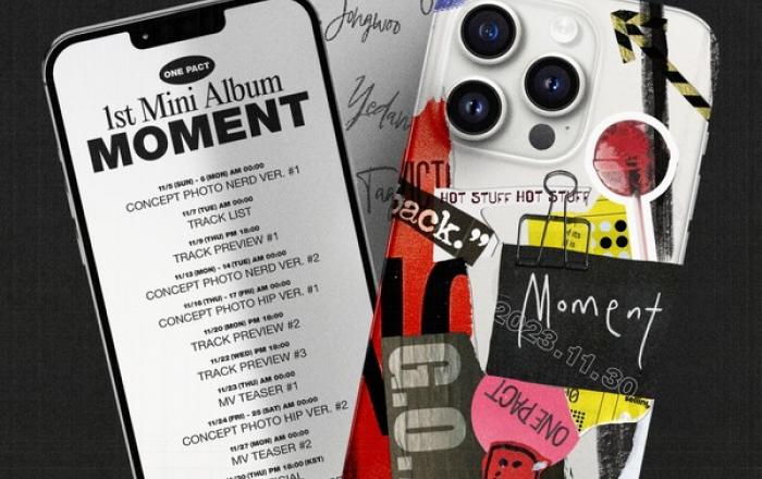 그룹 원팩트(ONE PACT)가 데뷔 초읽기에 돌입했다. 소속사 아르마다이엔티(이하 아르마다)는 2일 0시 공식 SNS를 통해 원팩트 첫 번째 미니 앨범 'Moment(모멘트)'의 스케줄러 이미지를 게재했다. 이미지에는 힙한 디자인으로 커스텀 된 스마트폰이 겹쳐져 있고