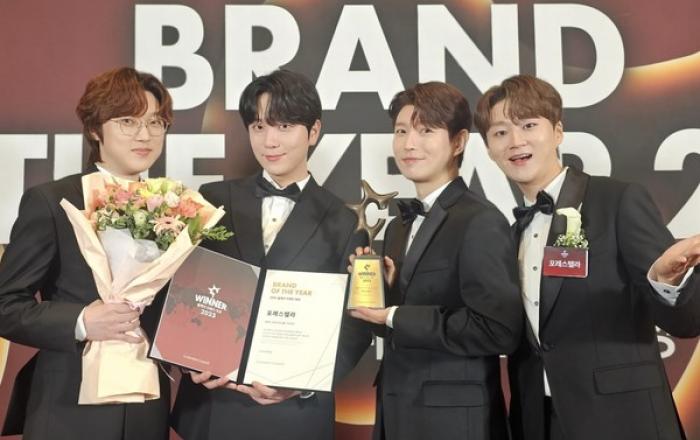 크로스오버 그룹 포레스텔라(Forestella)가 3년 연속 ‘올해의 브랜드 대상’을 수상했다. 포레스텔라(강형호, 고우림, 배두훈, 조민규)는 오늘(7일) 서울 중구 신라호텔에서 진행된 ‘2023