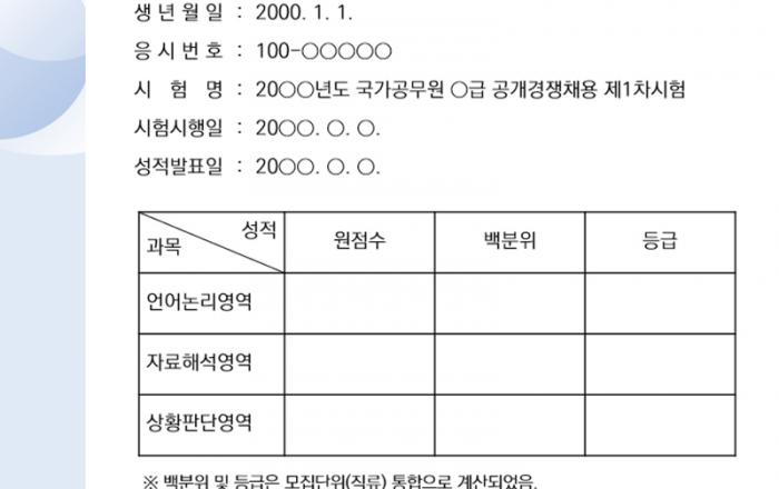 내년부터 공직적격성평가(PSAT)에 응시한 국가공무원 공채시험 수험생은 성적증명서를 발급받아 취업·진학 등 다양한 목적에 활용할 수 있게 된다. 인사혁신처는 내년 시행하는 5·7급 국가공무원 공채 1차시험부터 성적증명서를 발급할 예정이라고 24일 밝혔다. 현